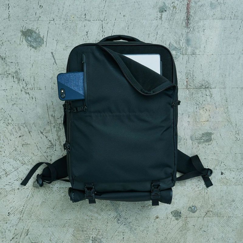 バックパックと横持ちの2通りの使い方が出来ます。コンパクトサイズで、背面のハーネスはジップで格納出来、手持ちの際にスッキリさせる事が出来ます。