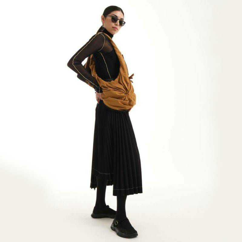 「スムースサンレイ」ナイロンを使用したPOは、côte&cielの「持ち歩くものではなく、着るバッグ」というモットーを体現しており、瞬時にウェアラブルなジレに変身できるハイブリッドなトートバッグです。中央のジッパーを使用すれば、PO の第 2 形態へ変形できます。 折り紙からインスピレーションを得た原理に従って、POの構造はバッグまたはジレの形で再現された一連の複雑なレイヤーを見せています。外側には、小物を取り付けるための隠しポケットと D リング クリップが装備されています。 25SSの新色である「スムースサンレイ」ナイロン生地を使用しています。 Your browser does not support the video tag.