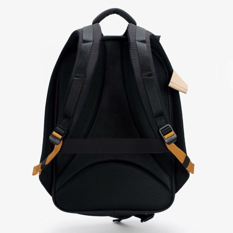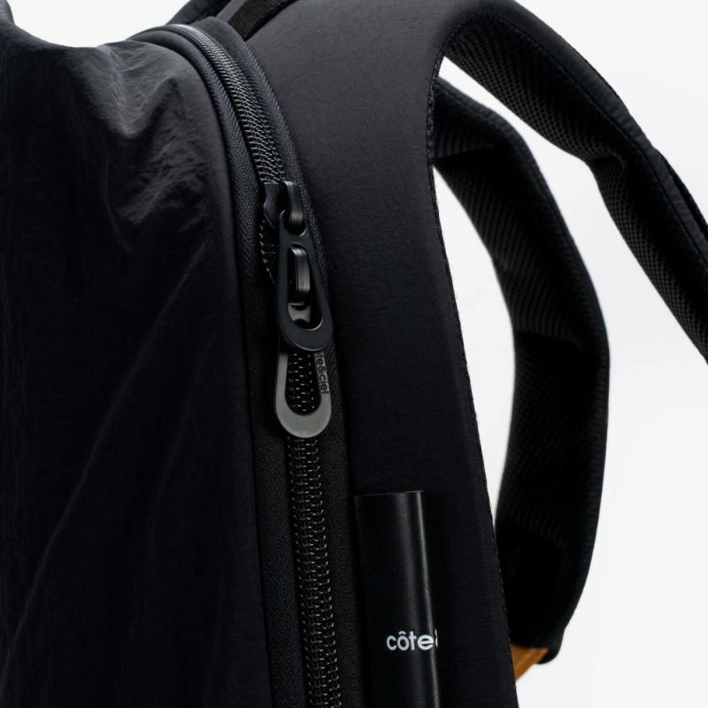 ISAR M の構築的なフォルムは、実用性が高く美しいシルエットを生み出します。 本体には「スムースブラック」生地を使用。外部のアジャスターはISAR Mのボリュームと連動し、荷重に応じて膨張したり圧縮したりします。また、人間工学に基づいた形状のバックパネルを備えています。