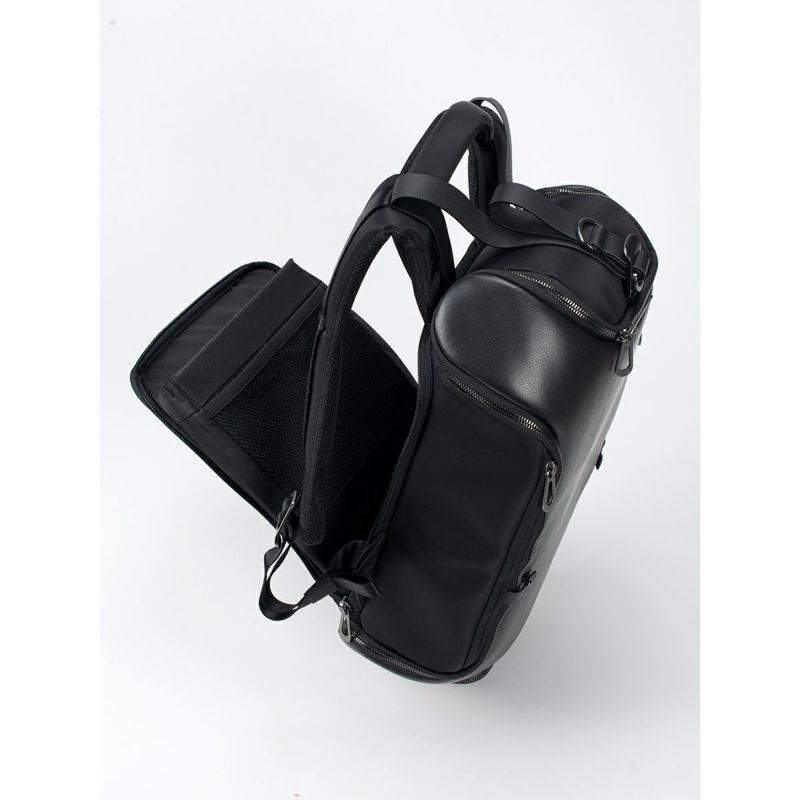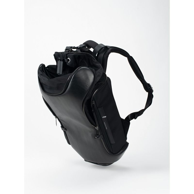 甲羅の構造を反映させたデザインのAvonは、ファスナーを開けることで収納容量を増やすことができるバックパックです。 各部のファスナーを開閉することで、収納容量を増やすことができます。 メインのポケットへの入口はバッグ上部の巾着となっており、ファスナーカバーで固定できます。 パッド入りバックパネルは、ファスナーで開閉してメインポケットにアクセスが可能です