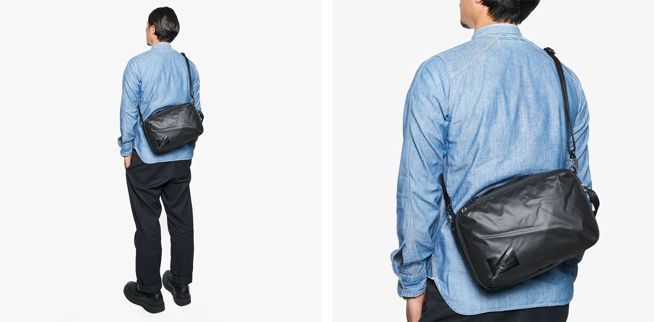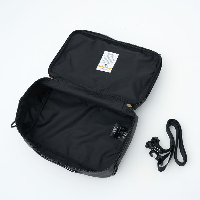 軽量ながら防水性に優れたトラベルショルダーバッグのSサイズ。付属のベルトを付け、ショルダーバッグとして持ち運べます。