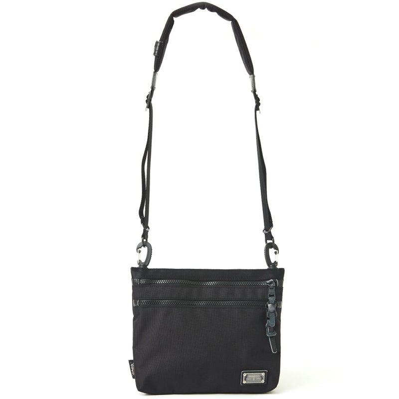 BALLISTIC NYLON シリーズ一覧はこちら 本体素材はタテ糸に1000D、ヨコ糸に840Dの66ナイロン糸を使用したオリジナルのCORDURA Ballistic® 生地になります。 タテ糸は500Dのブライト糸をATY加工 (機械を使用し糸自体に空気を含ませる) を施しスパンライク調にした後、撚ったものを2本引き揃え、ヨコ糸は420Dのブライト糸を撚ったものを2本引き揃えオックス織りしていますので、大変堅牢な生地になります。 また、タテ・ヨコで規格の違う糸を使用することで程よい光沢を残した深みのある生地になります。 付属レザーには北米産のステアレザーの優良原皮を、環境汚染の誘因となる薬品、有害物質の使用を排除し、ベジタブルタンニンで鞣された環境にも人体にも優しいヌメレザーを使用しています。 工場独自の染色加脂による加工技術により、ソフトな感じを残しつつも弾力、ハリのあるタッチ感や透明感があります。 仕上げには職人の手作業によるオイルグレージング仕上げを行い、仕上がりの状態を確認しながらさらにフェルトバフをかけての積み重ねにより、革に最上のタッチ感を出すように仕上げております。 ポーチとしても使用可能なサコッシュ型の 2WAY ショルダーとなります。前面に ZIP ポケット、背面にはオープンポケットを配置しております
