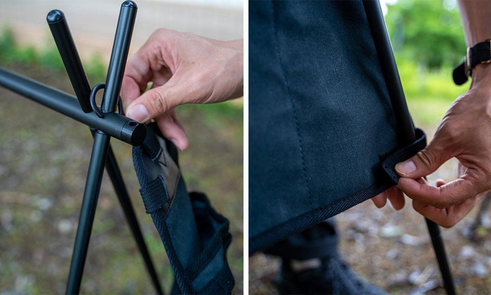 焚き火の火の粉などが当たっても燃え広がりにくく、インディアンハンガーのサイドポケットとして、キッチン周りの用具やガストーチ、手袋などを収納出来ます。