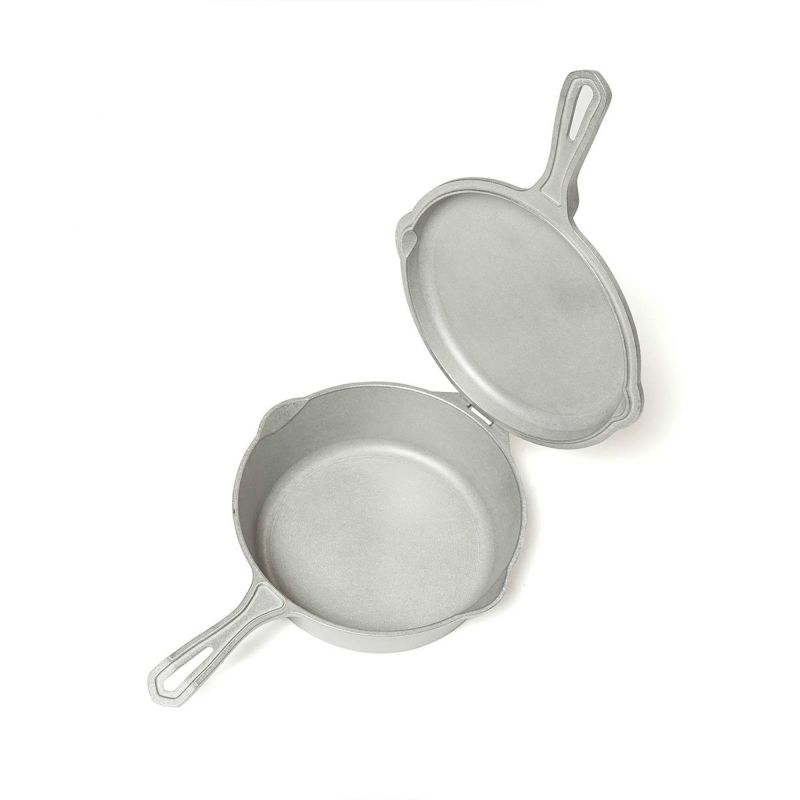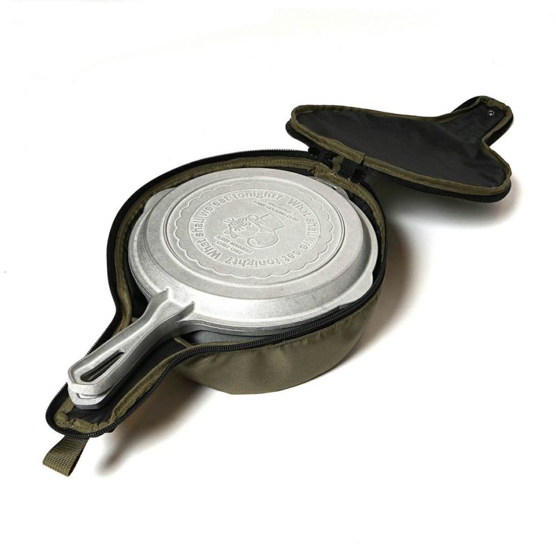 USA製のビンテージコンボクッカーを10インチから8インチにリサイズし、素材を鉄からアルミ合金に置き換えました。 元型から槌目以外を忠実にトレースし金型を作って日本国内でダイカスト成型し軽量に仕上ています。