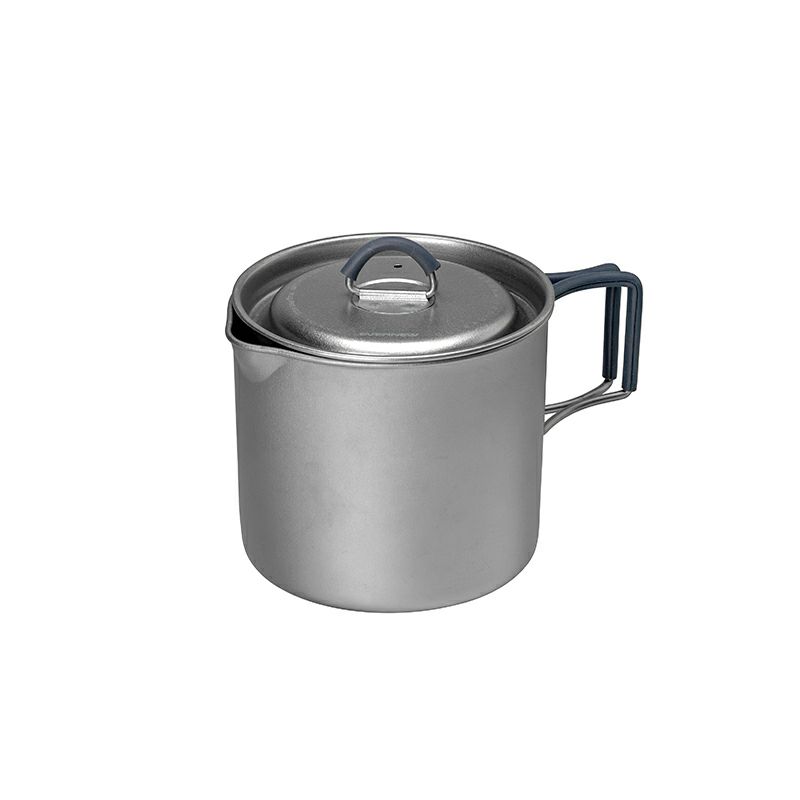 底に段差のない「Ti Mug Pot 500」です。 開発担当者に心の段差がなくなりフラットな気持ちになったことの現れです。 サイズ:径97×深さ87mm 質量:79g(シリコンチューブ含む) 容量:550ml(目盛り付き) 素材:純チタン(国内製造) D-PAT.P 生産国:日本