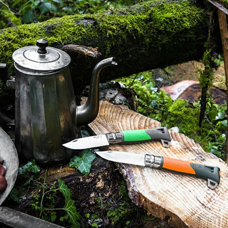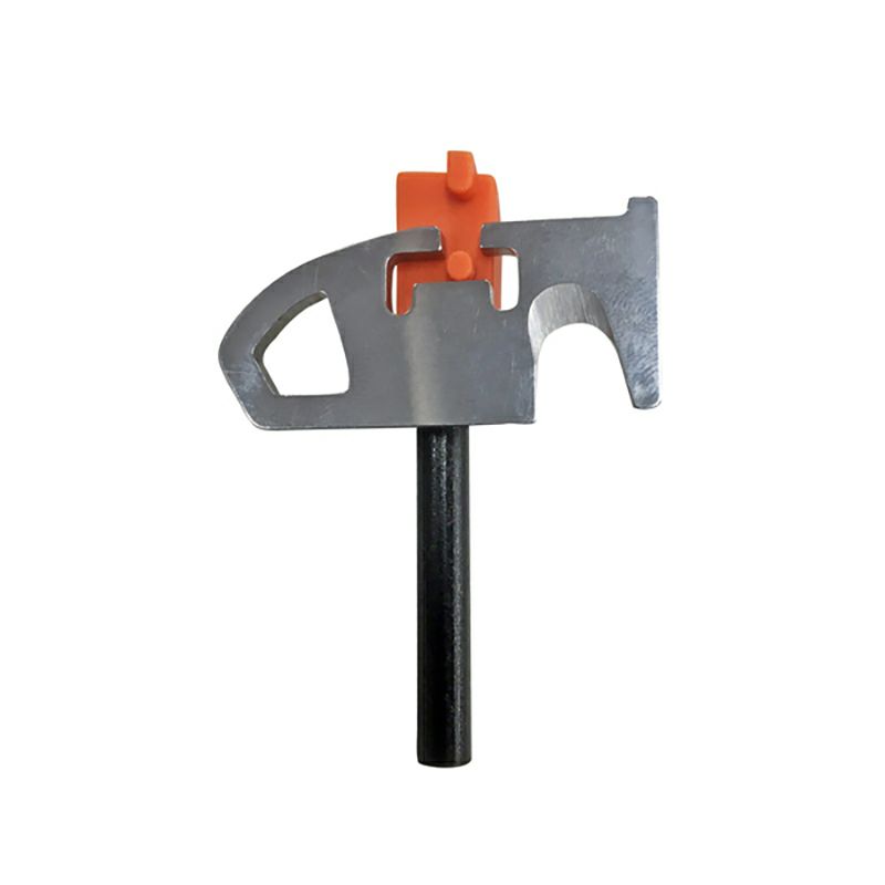 アウトドアに最適な多機能ナイフモデル“エクスプローラー No.12”。 ファイヤースターター(本体から取外し可)、カッティングフック(本体から取外し可)、ホイッスル(ナイフの持ち手部分)機能を装備したモデルです。アウトドアはもちろん、ハンティング、ブッシュクラフトに最適です。