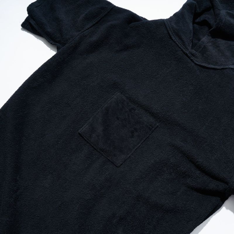 表地には、肌触りのいいシャーリング加工を施し、裏地は吸水性がよく濡れた体をしっかり拭くことが出来ます。 また、フード付きのデザインのため、濡れた髪もポンチョを着たまま拭くことも事もです。内装にはポケットがついており、着替える際に小物を入れておくのに便利な仕様になっています。 サーフィンの着替えにはもちろん、海水浴での着替えや、キャンプの際の着替えにも使用して頂けます。