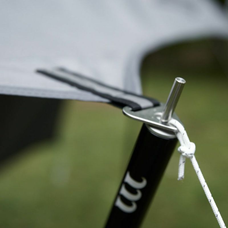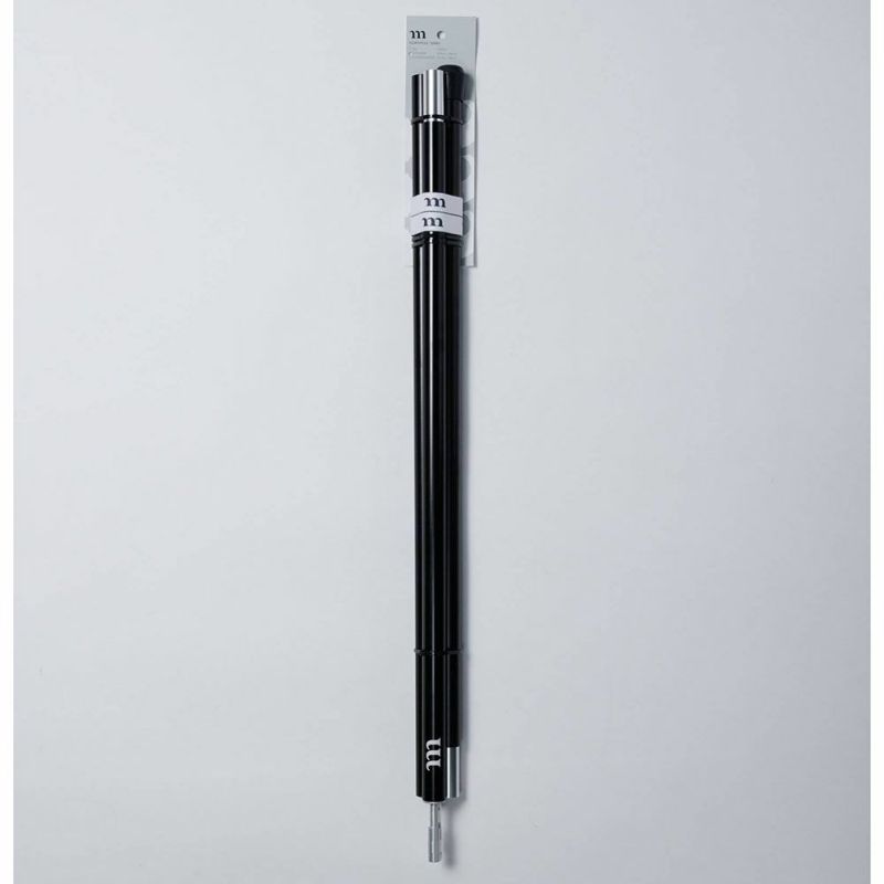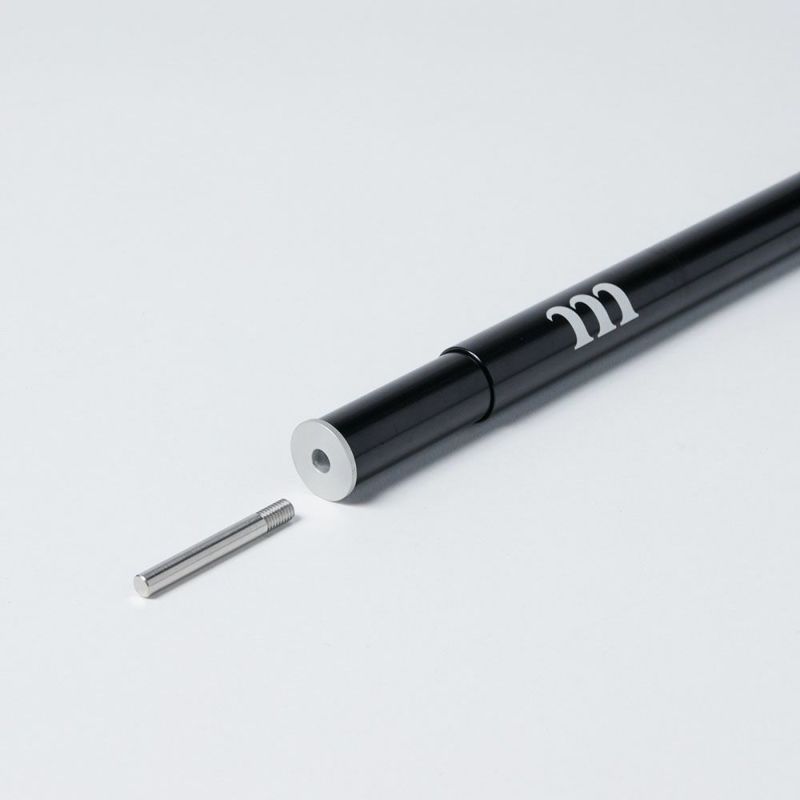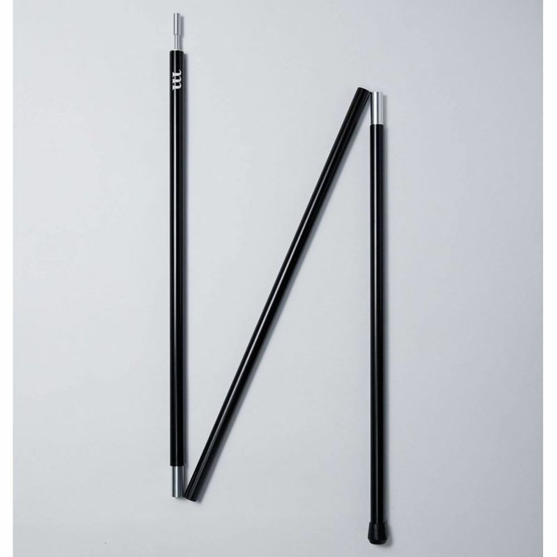 200cmから248cmまでのエクステンション機能を備えたタープポール。 3節に分割されたポールはショックコードで結ばれており、素早い組立が可能です。 素材はマグネシウムの含有率が高く強固なA5056H18アルミ合金を採用。 パイプ形状への扱いが難しく流通量の少ない素材を、高度な加工技術で製品化しました。 - 200cmから248cmまで、7.5cmピッチで長さの調整が可能です。 - 先端のピンには、フランジ形状で外れにくいアルミピンと、ストレート形状でグロメットへも差し込み可能なステンレスピンの2本が付属しています。 - 連結金具にはネジ加工が施してあり、ショックコードの交換ができるようになっています。 mロゴ入りのゴムバンド が付属しており、収納時にまとめやすくなっております。