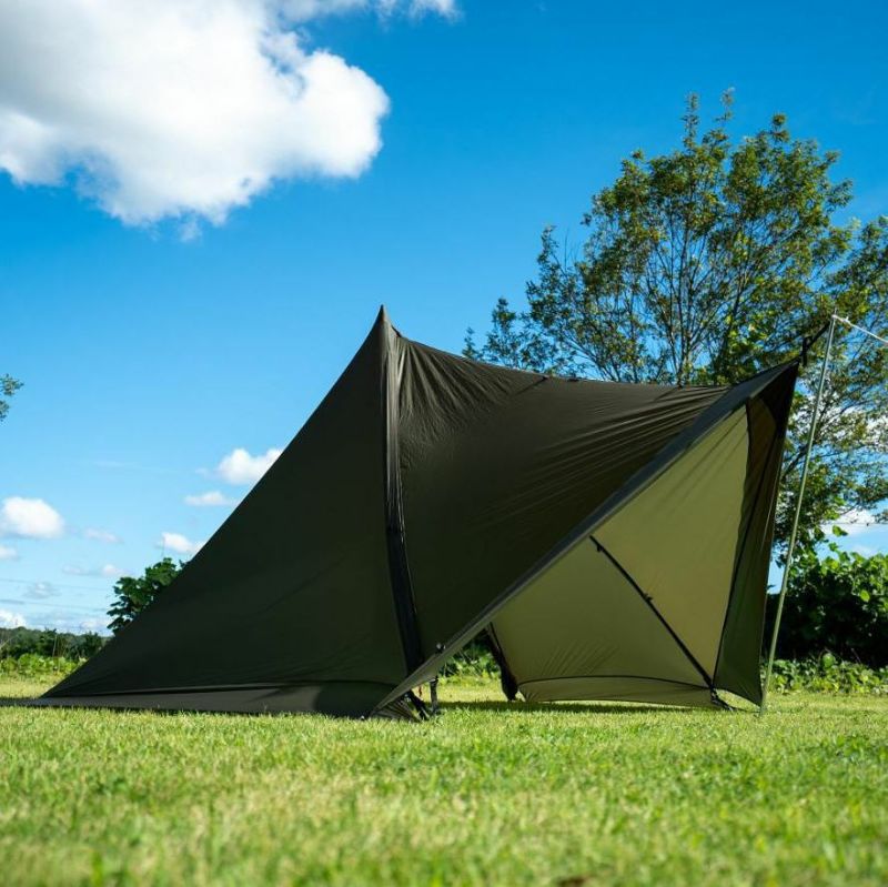 超軽量モノポール タッソの変形機能を受け継ぐ、リップストップ採用の超軽量モノポール。 フライとポールの総重量は1.2kg。 五角形、六角形で使用できます。 バックパッカーやソロキャンプに最適です。 ・重量 総重量:約1.2kg (付属品除く、付属品:約0.22kg) フライ:約0.86kg、ポール:約0.36kg ・素材 フライ:ナイロンリップストップ20d(耐水圧1,800mm) ポール:6061アルミ合金φ16mm ・収納サイズ 幕体:26×14×14cm フレーム折り寸法:36cm ・付属品 張り綱1.5m×6本、アルミピン×12本、収納袋 ご使用の際は必ず取り扱い説明書をご一読ください。