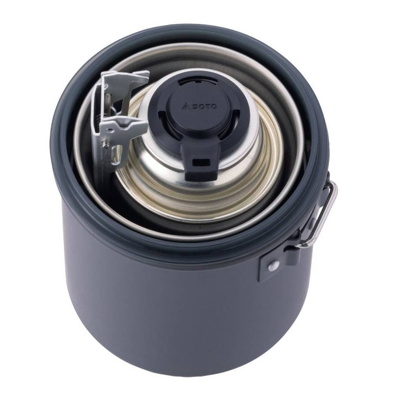(使用時)φ108(鍋底φ96.6)×高さ155mm (収納時)φ108(鍋底φ96.6)×高さ134mm リッド:φ107×高さ33mm スペーサー:φ102×高さ35mm マグ350:φ84×高さ98mm マグ650:φ108×高さ98mm リフター:幅29×奥行108×高さ70mm 総重量 約250g 容量 マグ350:容量 350ml(満水容量 400ml) マグ650:容量 650ml(満水容量 700ml)