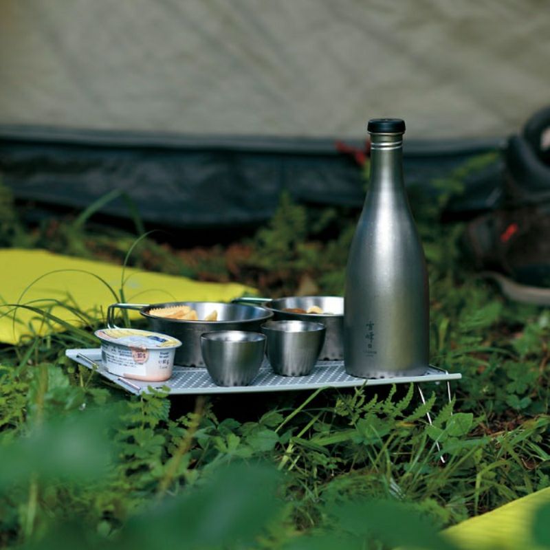 チタン製の持ち運びができる酒筒。 日本の情景によく合う日本酒を、粋に持ち運べる酒筒。すっきりとシェイプされた形状はお猪口に注ぎやすくなっています。チタンは金属臭がなく、臭い移りも気にならないため、どんな日本酒も美味しく楽しむことができます。 酒筒の特徴 日本酒を酌み交わしながら、四季の風情を粋に楽しむ酒筒。 日本の情景によく合う日本酒を、粋に持ち運べる酒筒。すっきりシェイプされた酒筒はお猪口に注ぎやすい形状です。 不可能を可能にした燕三条の職人技が生み出した形状 一見、シンプルな一升瓶型をした酒筒ですが、金属加工に携わる人が見ると驚きの声を隠せない、職人技が隠れているのです。 まずは一升瓶ならではのフォルム。通常プレス加工では、内から外へ力をかけて器状にしますが、酒筒においては上部の口を狭めるために外から内に力をかけるという2つの工程を同時に必要とします。そこ課題をクリアするために金型の微調整を繰り返し、何度もプレスを行い、試行錯誤を繰り返したことにより、この造形美を導き出すことに成功しました。 シングルウォールで冷えやすい 酒筒はシングルウォール構造ですので、冷たい水に浸して置けば冷えやすく、日本酒の適温を管理しやすくなっています。