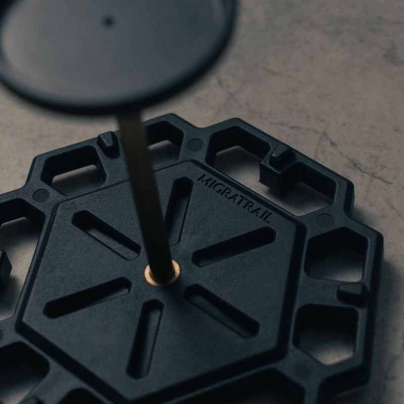 リビングにもキャンプシーンにも、馴染む万能プレート ジオメトリックプレートの機能を拡張して、アウトドアから自宅のリビングを飾る特別仕様。憩いの場をキャンプから自宅のリビングへ。 セット内容 プレート本体 :1枚 真鍮アダプター :1本 アルミニウム製プレート :1枚