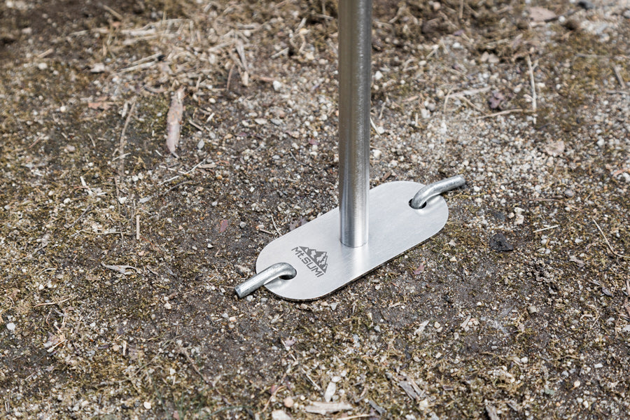 横出し / 斜め出しの煙突を支える 煙突スタンド 内容 : ・本体 (60~145cmに伸縮可能) ・煙突用固定リング (φ58~85mmの煙突に対応、ワイヤーリング無) ・フック × 2 ※ペグダウン用のペグ・ロープは付属しません。 POINT.1横出し / 斜め出しの煙突を支える専用スタンド ストーブの煙突を横出し / 斜め出しする際に煙突を支える専用スタンドです。 ステンレス製でサビにくく、固定金具をネジで留めるだけの簡単取り付け。 3段階の伸縮式で収納はコンパクトに、最大145cmまで伸ばすことができるので、さまざまなシーンでご使用いただけます。 Mt.SUMIの薪ストーブの煙突すべてに取り付けが可能です。 POINT.2ベースの固定で安全に ベースの穴にペグを使って地面に固定できます。 風にも強く、安全にご使用いただけます。 ※ペグは付属しません。直径10mm以下のペグをご用意ください。