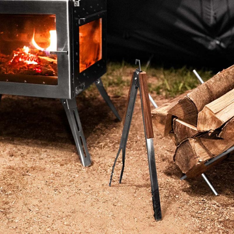 フック付きで、薪ストーブやグリルに引っ掛けられるのも嬉しいポイント。