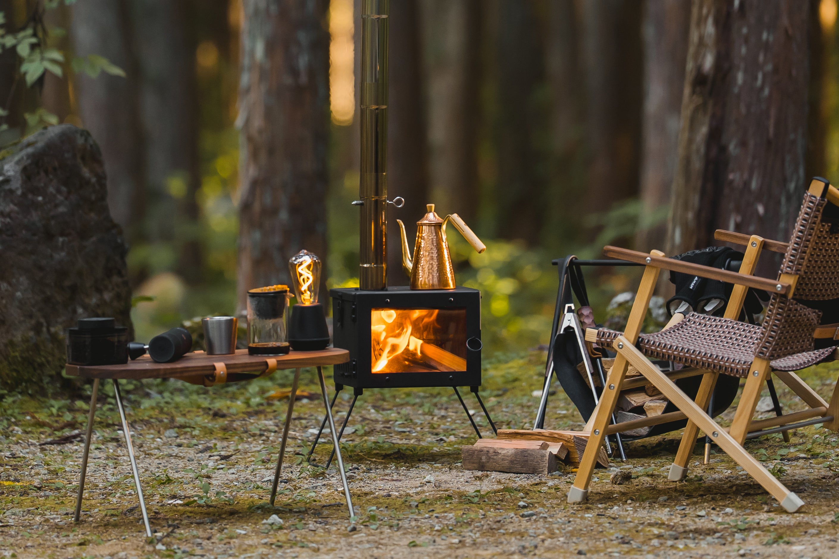 進化した火付け性能 3WAY小型二次燃焼ストーブ セット内容 ・薪ストーブ本体 ・φ58煙突 (250mm × 6本継ぎ トップ・ダンパー付ボトム含む) ・煙突固定用リング (ペグダウンにはロープ・針金などを別途ご用意ください) ・焼き網 ・両口スパナ ・六角棒スパナ ・収納バッグ ※改良の為、予告なく仕様やデザインの変更をする場合がございます。ご了承ください。 POINT.1小型・軽量で扱いやすい二次燃焼薪ストーブ「マイクロ2」 全辺30cm以下・本体重量6.7kgとコンパクトで持ち運びやすく、焚き火台とグリルの機能を兼ね備えた二次燃焼薪ストーブです。 煙突やアクセサリーもすべて炉内に収納できるため、荷物をすっきりまとめられ、持ち運びや保管も簡単。 シンプルな構造ながら二次燃焼機構を搭載しており、高い燃焼力で煙もクリーン、灰も少なく後片付けもラクラク。 オールシーズン活躍し、初めて薪ストーブを使う方にも安心しておすすめできる1台です。 POINT.2薪ストーブ・焚き火台・グリルとして使える3WAY仕様 薪ストーブとして天板での調理はもちろん、天板を外すと二次燃焼構造の焚き火台としても使用でき、付属の焼き網を使えばグリル調理も楽しめる3WAYタイプ (※燃料に炭は使用できません) 。 上から眺める焚き火とはまた違った火の見え方を楽しむことができます。 また、火の状態がわかりやすく、吸気口や扉を開けて火の調節ができるため、グリルとしても使いやすい構造です。 ※焚き火台やグリルとして使用する際は、天板蝶番 (金具) を横にスライドさせ、天板を完全に取り外してご使用ください。 POINT.3可動式バッフルとダンパー煙突を標準搭載 火力をコントロールしやすい可動式バッフルと、空気の流れを調整できるダンパー付き煙突を標準装備。 これにより着火がスムーズになり、炎の強弱や燃焼時間を自在に調整可能です。 初心者でも扱いやすく、上級者にはさらに快適な火加減コントロールを提供します。 POINT.4大きなガラス窓が魅せる、迫力の炎 従来の小型薪ストーブでは味わえなかった迫力の炎を、大きなガラス窓から存分に楽しめます。 コンパクトな本体サイズながら、燃焼室全体の炎を広々と眺められる設計で、焚き火のような臨場感を演出。 調理中に火加減を確認しやすいのはもちろん、ゆらめく炎を鑑賞しながら過ごす時間はキャンプの贅沢なひとときに。 「暖を取る」「調理する」だけでなく、「炎を楽しむ」楽しみをプラスした、焚き火好きにこそおすすめの一台です。
