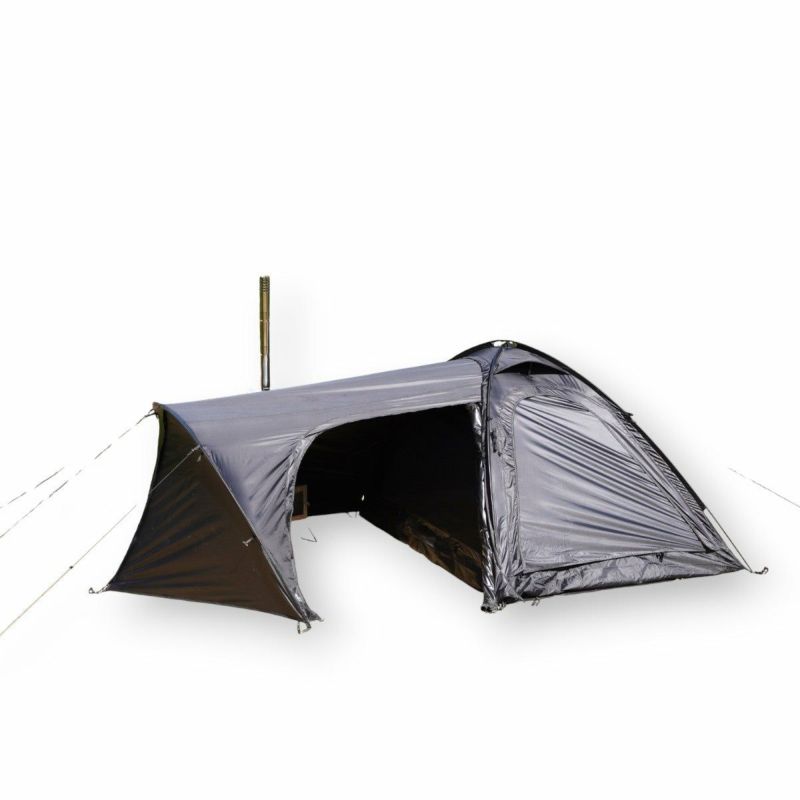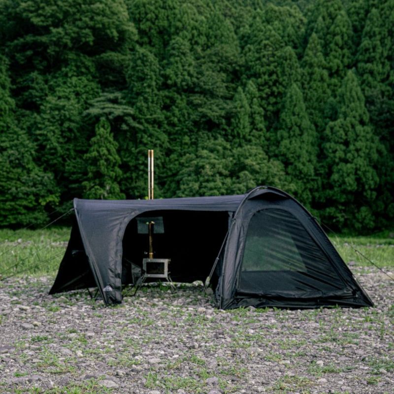 前幕を付けず、自立式テント単体で使用すると、ストーブテント「ノナ」シリーズをはじめ、ワンポールテントやシェルターにもぴったり収まるインナーテントとして活躍します。
