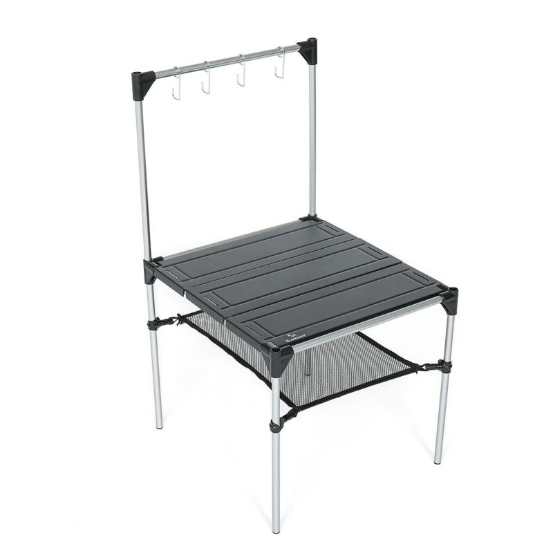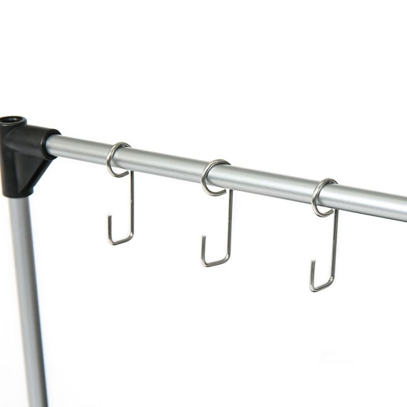 1. に取り付けてご使用いただける折り畳みハンガー 2. 複数のフックでキッチンウェアやライトなどをぶら下げることが可能です。