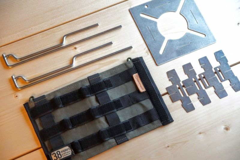 A38grateに付けるアタッチメント。フレーム、遮熱板、風防、ケース(缶カバーBK)のセット。ケースにすべて収納してA38grateに収納可能。