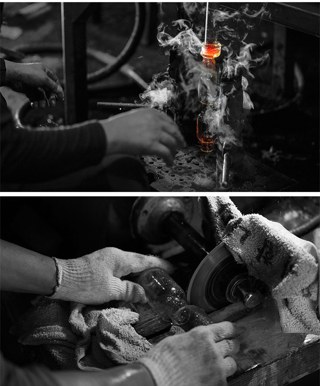 ドイツから輸入した丸いガラス管を職人が手作業で制作して、