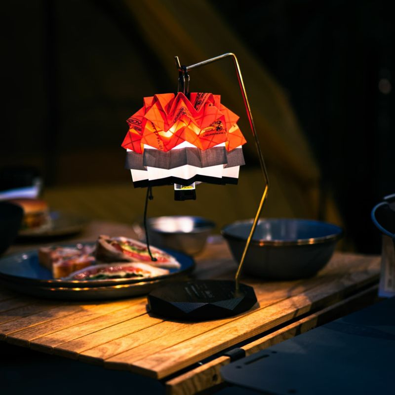 インテリア業界出身のSOLさんが、キャンプ好きが高じて、LEDランタン用のランプシェードとして、一点一点ハンドメイドで織り上げたプロダクト。