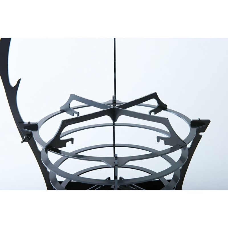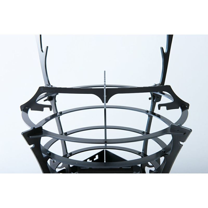 スキレットやフライパン調理にもってこいの、GURU GURU FIRE専用オプションパーツ【GOTOKU】。 本品はGURU GURU FIRE Sサイズ/Mサイズどちらにもコレ1つで対応。 ジョイント部分となる凹みが2箇所設けられており、 内側の凹みはSサイズに、外側の凹みはMサイズに、それぞれ適応します。 調理器具が滑り落ちないよう、調理器具が触れる面(GOTOKUの頂点部)は、 中心に向かって徐々にさがる階段状の段差を設けました。 また、薪を追加投入しやすいよう、GOTOKUのジョイント部(脚)自体を少し高く設計。 使い方は至ってシンプルで、 GOTOKUをクロスさせ切り込み部分をジョイント。 あとはGURUGURU FIREの最上部のリングにはめ込むだけです。 GURUGURU FIRE S/Mに同梱収納可能なコンパクト仕様です。 TRIPATH PRODUCTS インタビューはこちら