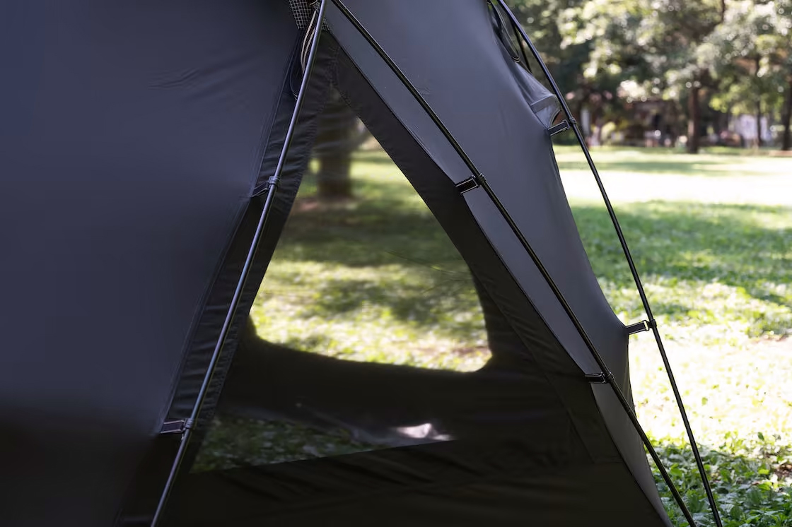 フライシート、ルーフトップカバー:68Dリップストップポリエステル / 撥水UV&PUコーティング(耐水圧3000mm) グランドシート:210Dポリエステルオックスフォード / 撥水UV&PUコーティング(耐水圧3000mm) フレームポール:A7001 muraco FLEXLIGHT Φ11mm