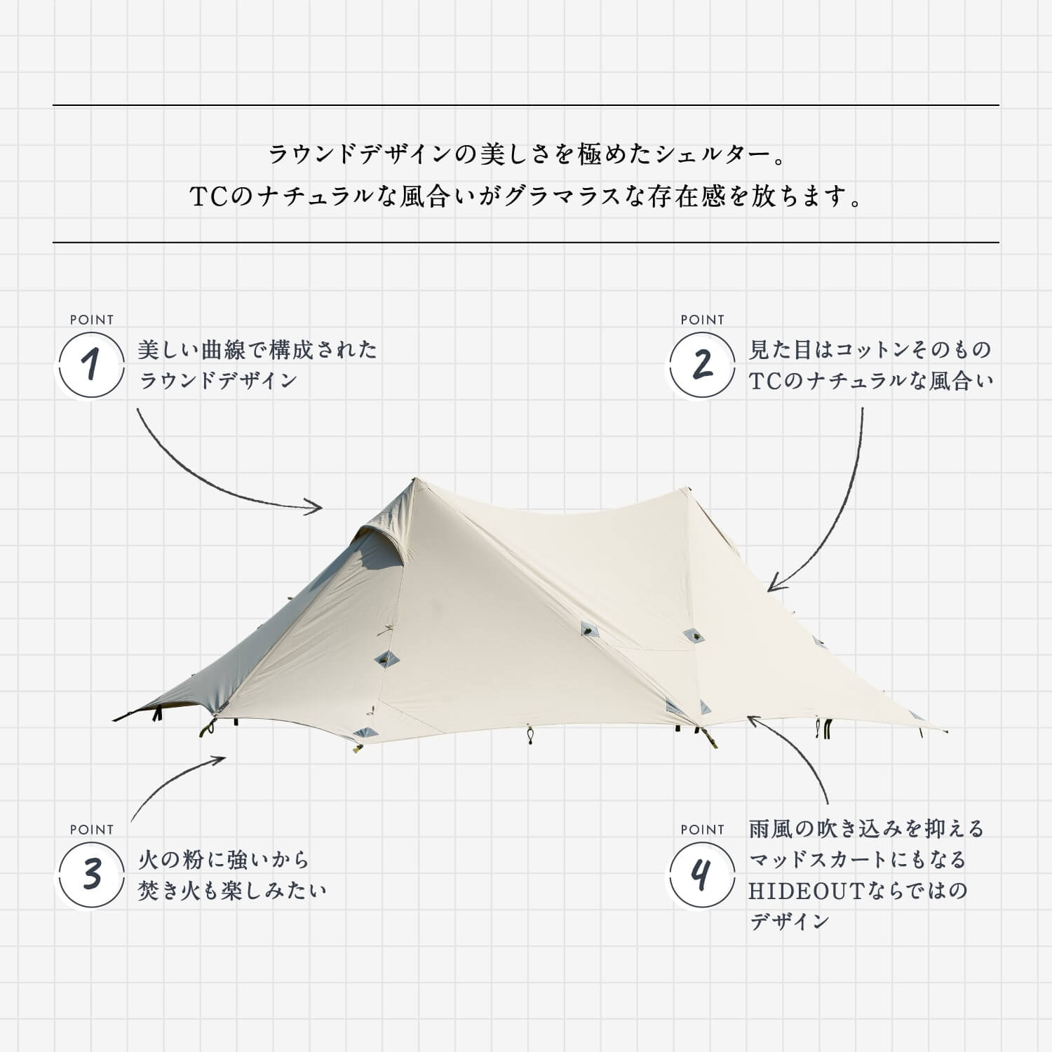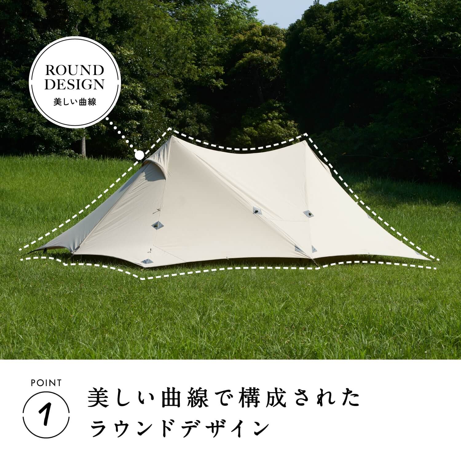 美しいラウンドデザインを極めたシェルター。ナチュラルな風合いの素材がグラマラスな存在感を放ちます。 【構成】 ・本体 1個 ・AL POLE 2本 ・収納ケース 1個 ・ロープ 3.5m×2本 2m×8本 ・ペグ 22本 【鎌倉天幕】 テント屋が仲間のためにつくったレーベル。 とにかく妥協なしに、かっこいいものを。 使いやすくて、持っていることを自慢できるものを。 結果、とてもグラマラスなブランドができました。