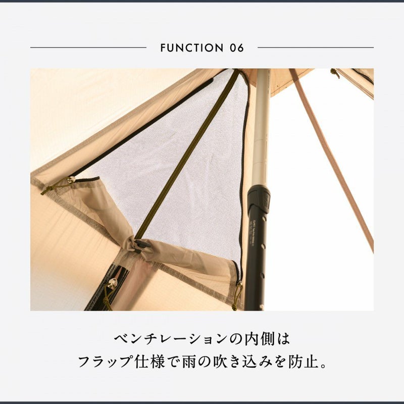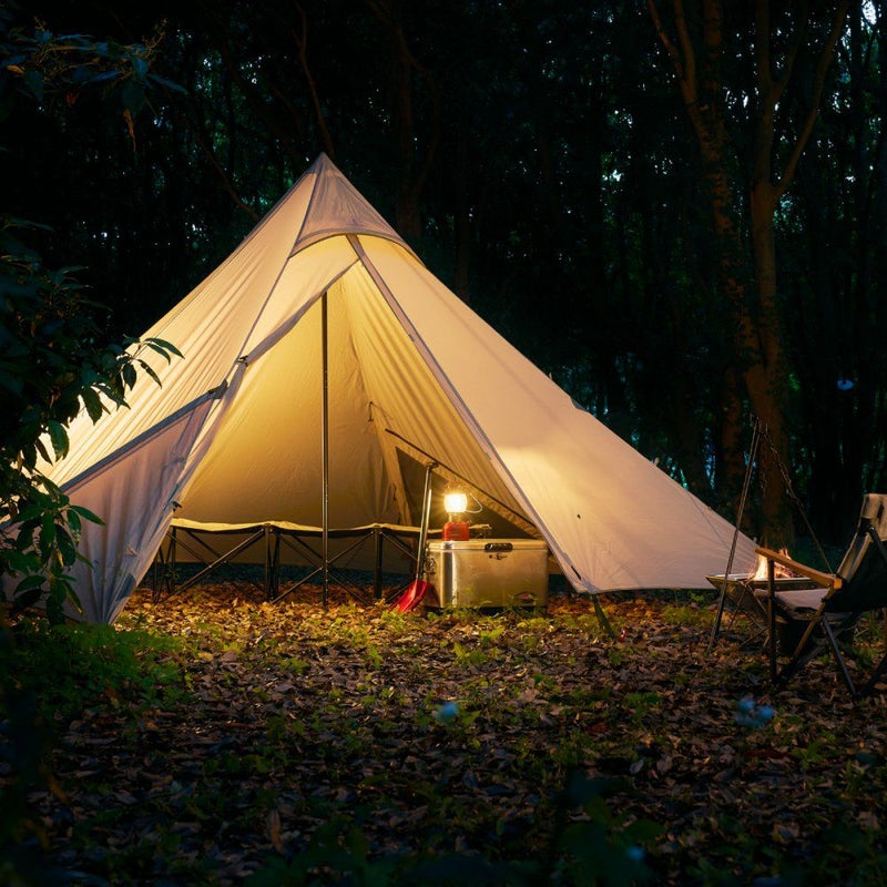 HIDEOUT シリーズから、ワンポールシェルターが登場。DAC ポールを標準搭載。 ・美しい曲線で構成されたラウンドデザイン ・クローズ、オープン、メッシュにも変幻自在 ・1ポールで設営できるシンプルなスタイル ・シェルターの用途が広がるダブルファスナー仕様 ・ポールの高さを下げれば、マッドスカートが風の吹き込みを防止 ・側面パネルはペグダウンも跳ね上げも可能でアレンジが多彩に ・耐水性と高強度を実現したリップストップ生地 【鎌倉天幕】 テント屋が仲間のためにつくったレーベル。 とにかく妥協なしに、かっこいいものを。 使いやすくて、持っていることを自慢できるものを。 結果、とてもグラマラスなブランドができました。
