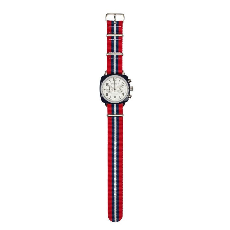 素材 : ナイロン、ステンレス 防水性 カラー : ストライプ柄(レッド、ブルー、ホワイト) カラーループ&バックル : 研磨仕上げスチール