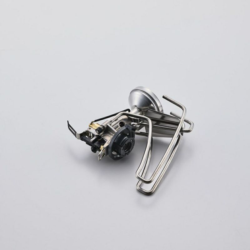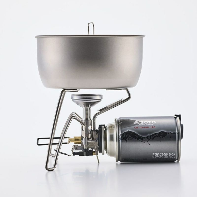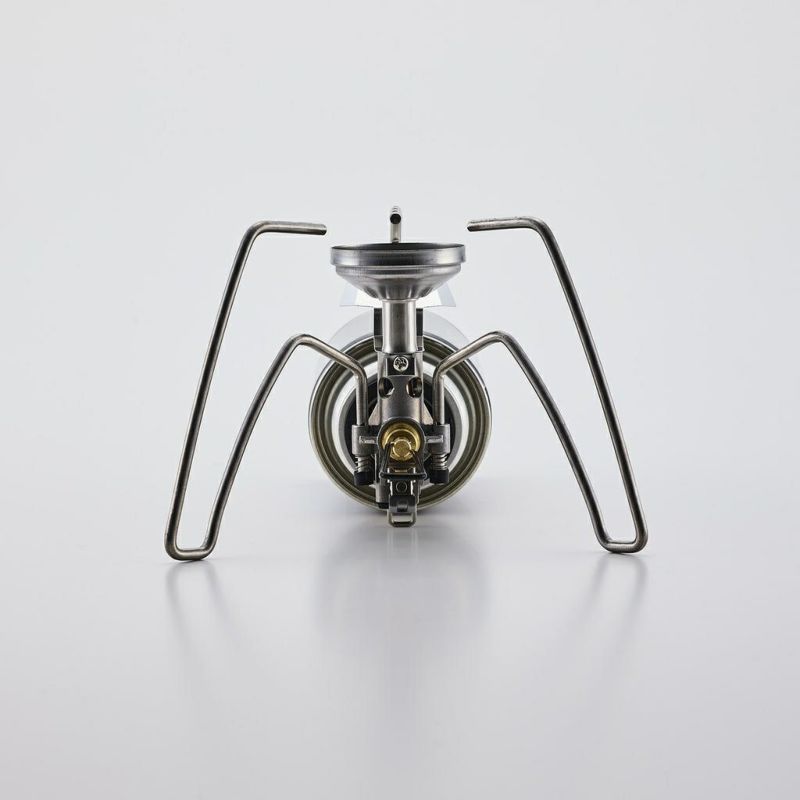CB缶を燃料とした、超軽量シングルストーブ 携行性を突き詰め、極限まで軽量化した登山用モデル ※ボンベは別売です。 ※屋外使用専用です。 CB缶バーナーの新常識 コンパクトで軽量な最新モデル 軽量でコンパクトなCB缶仕様のシングルストーブ 「レギュレーターストーブ ST-310」や「レギュレーターストーブRange ST-340」に続き、登山用のシングルストーブが登場。 これまでの安定感はそのままに、様々な箇所で軽量化を実現しました。 ST-310と比較すると、約59%の軽量化、 ST-310と比較すると、約42%の収納サイズを実現。 持ち運びが便利になり、携帯性やパッキング性に優れています。 耐風性に優れたすり鉢状の火口を採用。 ゴトクの材質はチタンを採用。 本体の軽量化をするとともに、熱伝導の低さからゴトクの加熱を抑制しヤケドのリスクを低減します。 ステンレス製の点火アシストレバー標準装備。 軽量化のため、遮熱板を必要最小限かつ安全なサイズに設計しました。 収納性・携帯性もアップ ゴトクが3本になったことで収納時もよりスリムに。 ST-310と比較して収納時の幅が42%コンパクトになりました。 収納ポーチの素材はタイベックを採用。 耐水性、強度、安全性に優れています。
