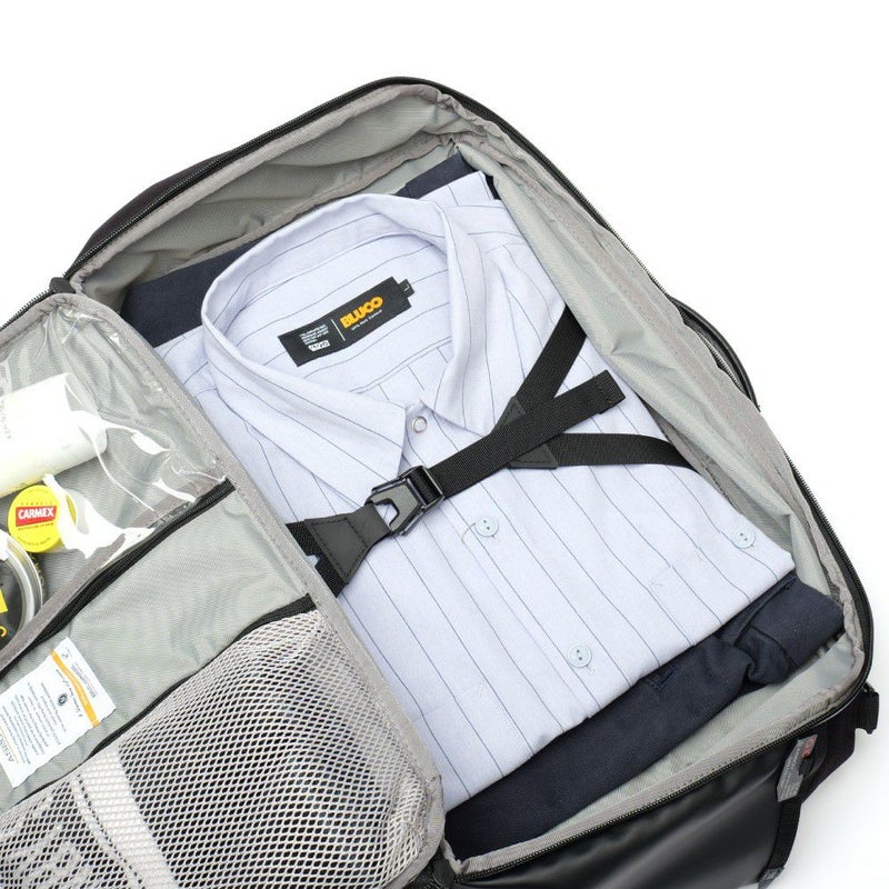 「BLEISURE SERIES」 Bleisure(ブレジャー)とは、「Business(仕事)」と「Leisure(遊び」を融合させた新しいライフスタイル。 出張、通勤、休日のアクティビティまで、あらゆるシーンに活躍する万能バッグです。 高い耐久性と耐水性を備えた、330D×1000D CORDURA® 3レイヤーや600D POLYCARBONATEを使用。Woojin製バックルやYKKファスナーなど、世界基準の品質パーツを採用しています。 BLEISURE DAY PACKはこちら BLEISURE BACK PACK Mサイズはこちら BLEISURE BACK PACK Lサイズはこちら BLEISURE TRAVEL SHOULDERはこちら BLEISURE CAMELA BAGはこちら MOVABLEGADGET BOARD スマートフォンやモバイルバッテリー、その他のガジェットを自由に配置できる取り外し可能なガジェットボード。 ビジネスシーンでもレジャーシーンでも、必要なデバイスをすぐに取り出せます。 PC STORAGE 15インチまでのノートパソコンを安全に収納できる専用ポケット。クッション性の高い素材でデバイスを保護し、ビジネス出張でも安心して持ち運べます。 PACKING TAPE 荷物の固定に便利なパッキングテープ機能。旅行時の荷崩れを防ぎ、効率的なパッキングをサポートします。 GPS CARD POCKET 別売のGPS追跡カードを収納できる専用ポケット。荷物の位置を常に把握でき、盗難や紛失時の安心を提供します。 BEACON SMART PASSはこちら EXTENDED STORAGE 容量を拡張できるエクステンション機能。荷物が増えた時でも柔軟に対応できる便利な設計です。 Travel Sentry® ID(TSID)搭載 本体には、世界共通の手荷物管理システム「Travel Sentry® ID(TSID)」を採用。 荷物ごとに固有のID(QRコード)が付与され、万が一紛失した場合でも、世界中の空港や遺失物取扱所から所有者へ迅速な返却をサポートします。 SITA WorldTracerをはじめとする国際的な追跡システムと連携しており、旅先での不安を最小限に抑えます。 オリジナルDOGTAG (ドッグタグ)が付属 付属のドッグタグにお好みのネームを記入し、自由な位置に装着してカスタマイズをお楽しみいただけます。 ※商品到着時はラベルが貼付されていますので、剥がしてご利用ください。