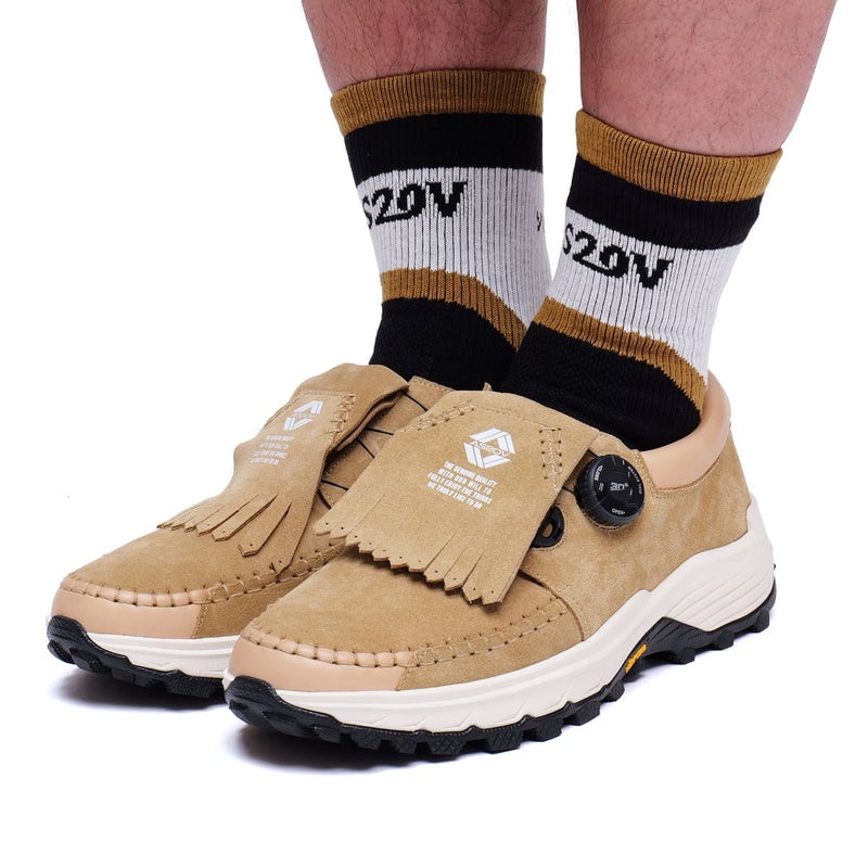 クラシックなモカシンデザインに、現代的な機能性を融合したゴルフシューズ。 アッパーには柔らかな質感の素材を使用し、足を包み込むような快適な履き心地を実現しました。 着脱しやすいダイヤル式のシューレースシステムを採用し、フィット感の微調整もスムーズ。 プレー中の安定性を高めながら、スマートな見た目も両立しています。 アウトソールにはグリップ力と耐久性に優れたソールを使用し、芝の上でもしっかりとした踏み込みをサポート。 ゴルフシーンはもちろん、タウンユースにも馴染む洗練されたデザインが魅力です。