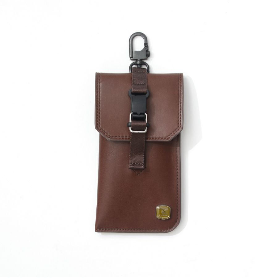 レザーシリーズの「HABIT SHOULDER」は防水レザーを使用した革なので、エイジングを楽しめるのも魅力の一つ。スマホを取り付けられるアタッチメントはもちろんのこと、カラビナやキーホルダーがついていたりと使い勝手が広がります。