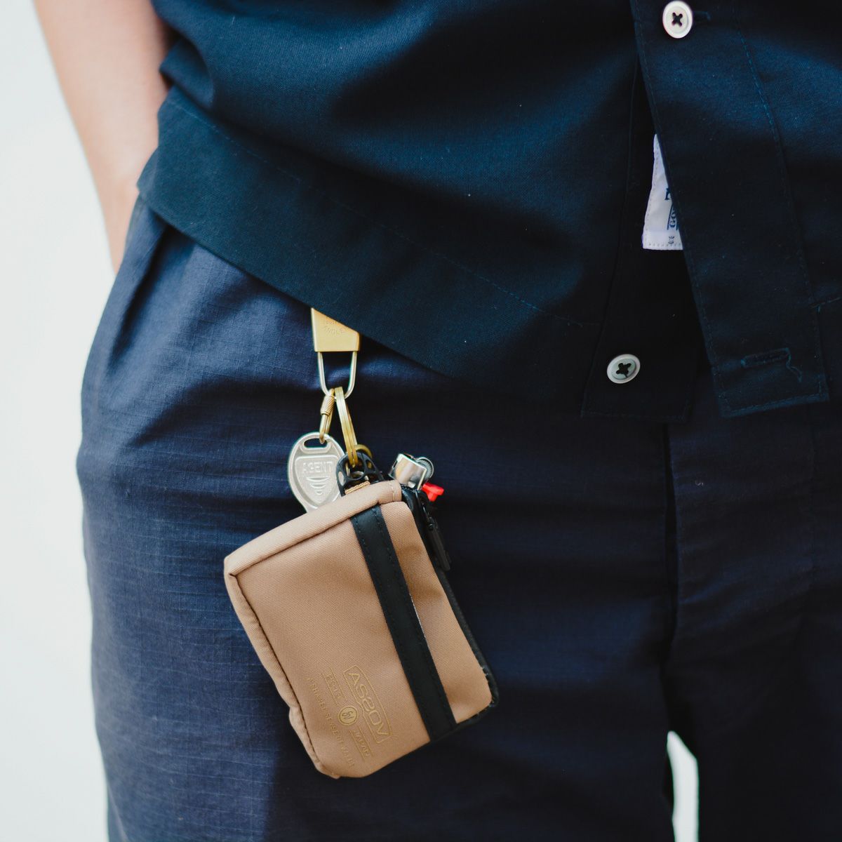 AS2OVの中でも人気の高い「WATER PROOFシリーズ」で使用している自社開発の「UNBY-TEX」を採用しました。UNBY-TEXは特殊ポリエステル糸のCOURDURA®︎ 305D fabricをベースに、透湿防水フィルム L-VENTをラミネートした、「水蒸気を逃し、雨風は通さない」耐水圧20000mm以上というレインウェアの何百倍の防水性を兼ね備えたハイスペックマテリアルです。