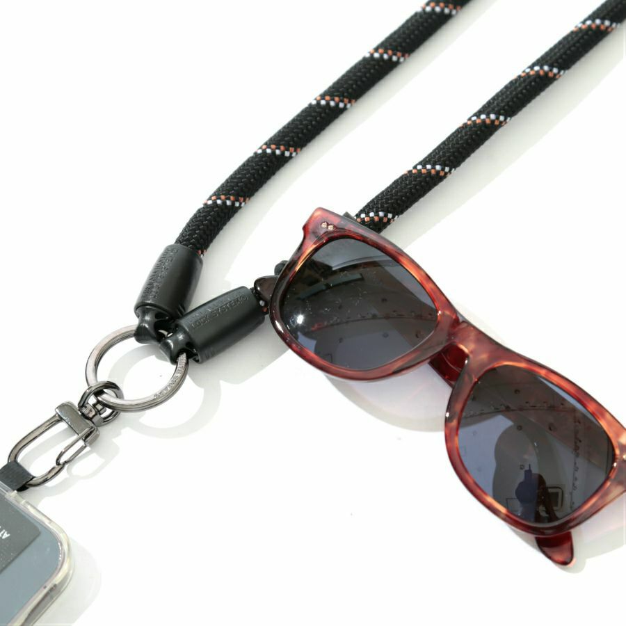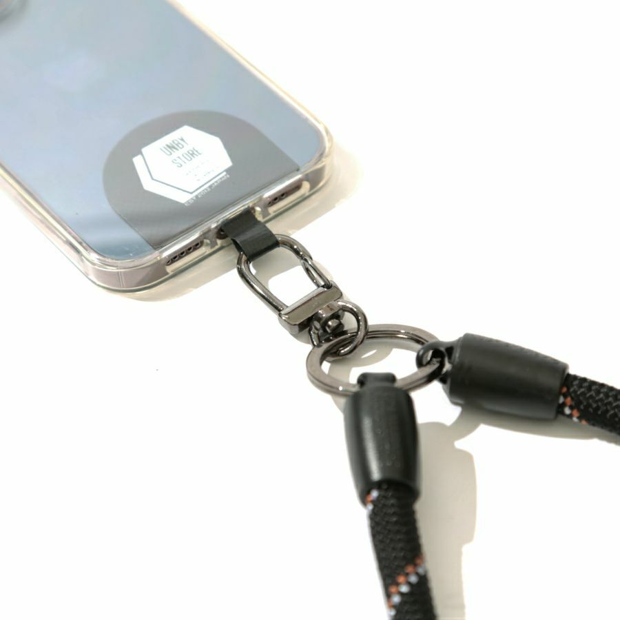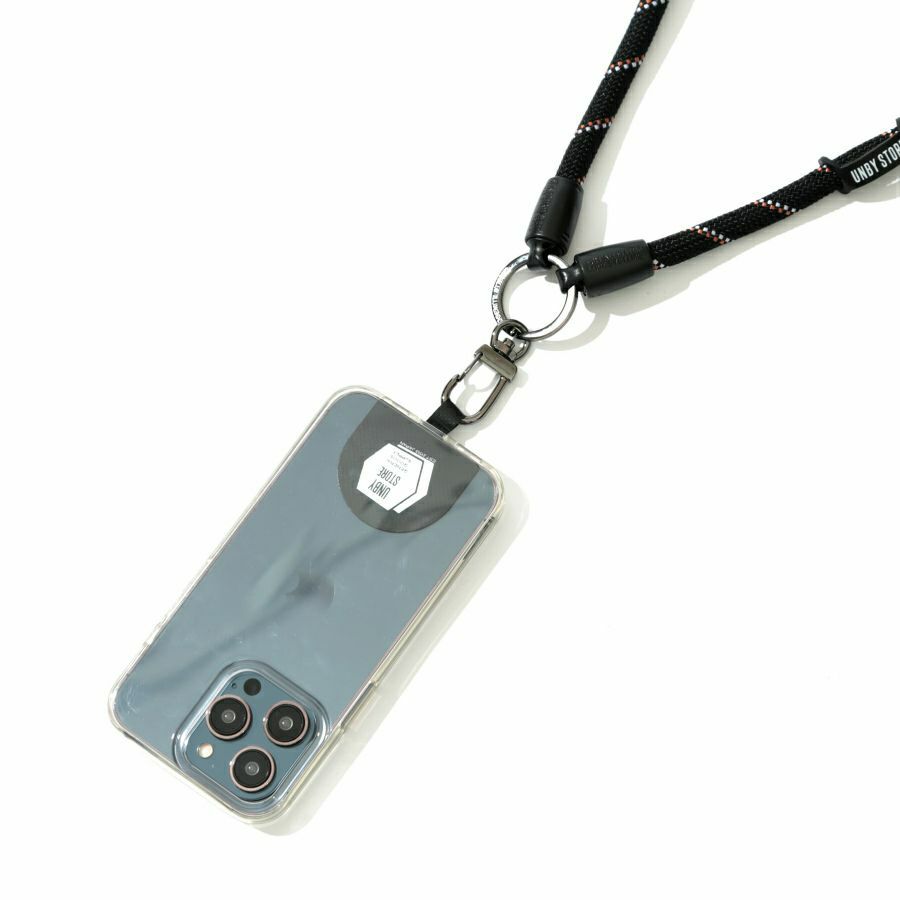 スマホストラップとしてスマホをぶら下げながら、鍵や小銭入れ、ゴールゼロなどをぶら下げてマルチユースなショルダースタイルに。