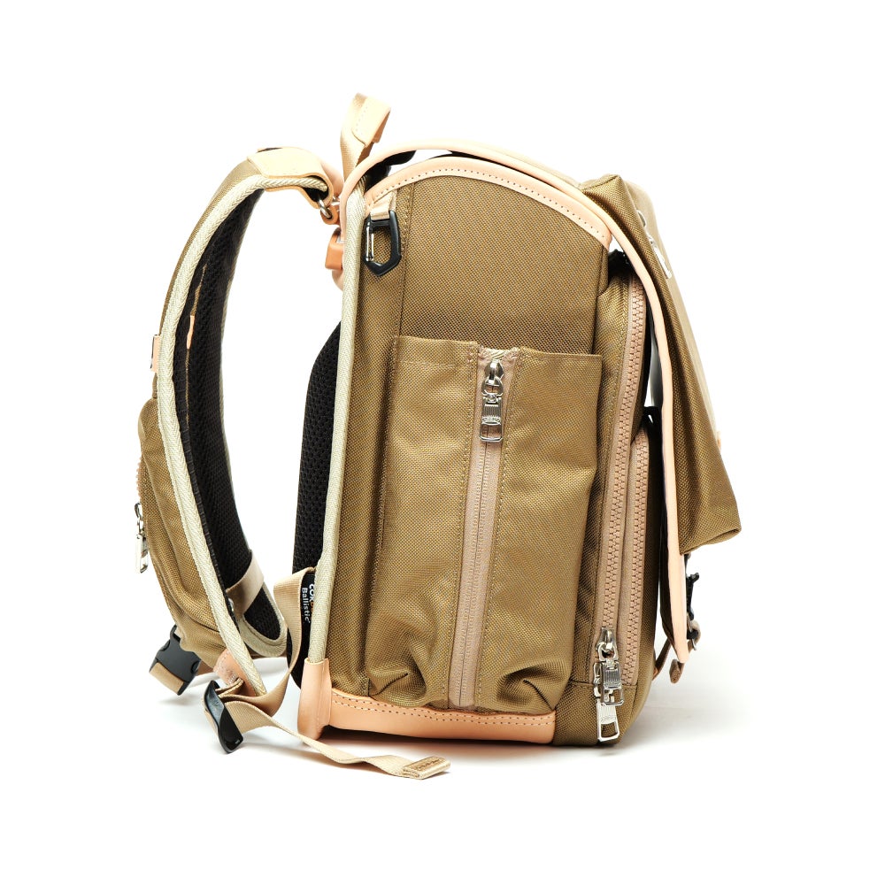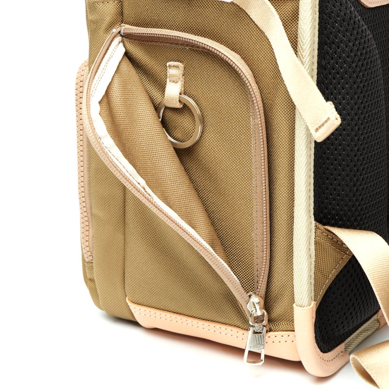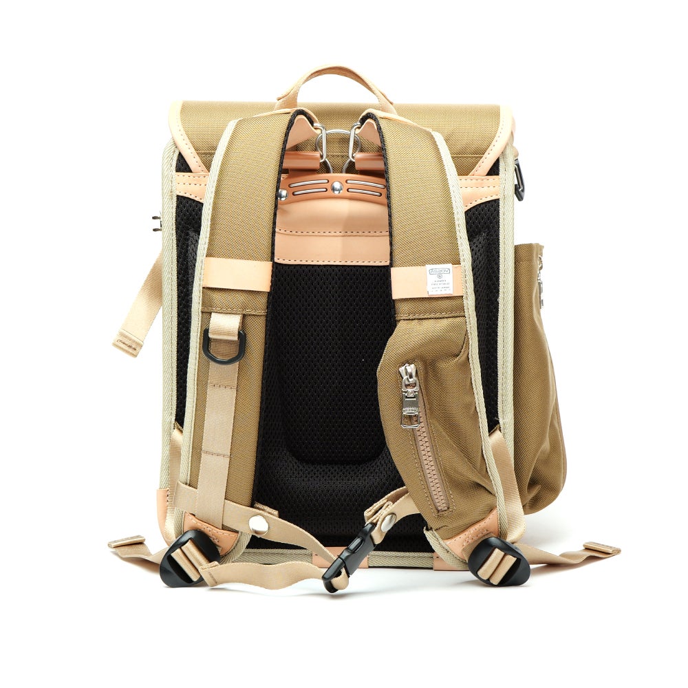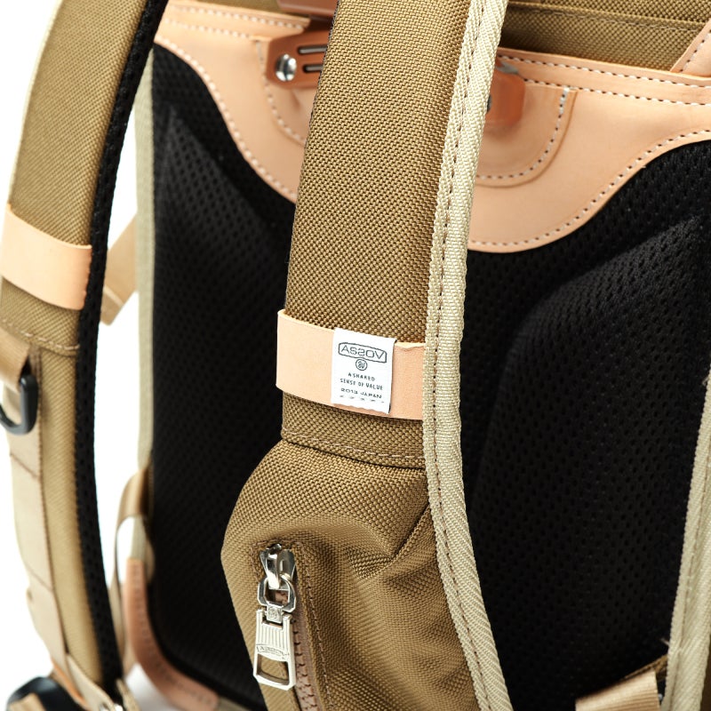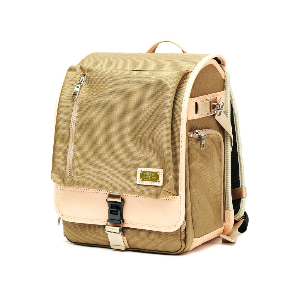 本体には耐久性に優れたAS2OVが別注した、オリジナルのCORDURAバリスティックナイロンを使用し、キズや摩擦に強く、毎日の通学でも安心してお使いいただけます。付属には上質なカウレザーを採用し、長く使うほどに風合いを楽しめます。