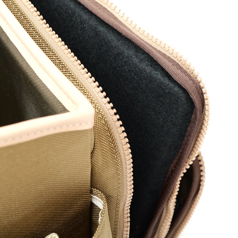 カードケースなどの取り出しやすさを追求し、L字型のジップを採用。スムーズな出し入れを可能にします。