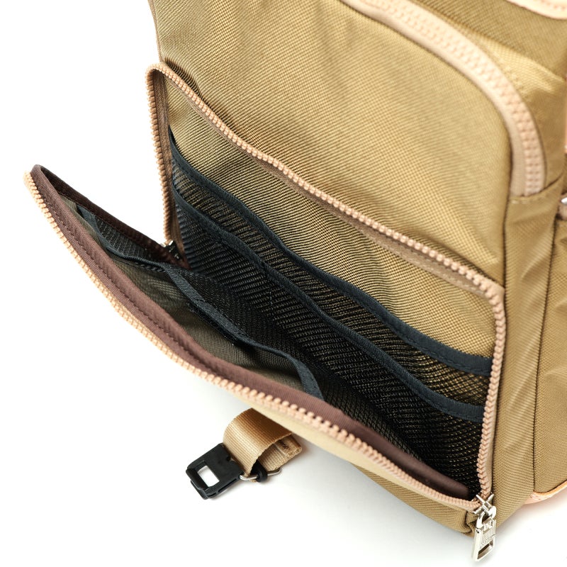 かぶせ部分には、頻繁に出し入れする小物をスマートに収納できるポケットを配置。