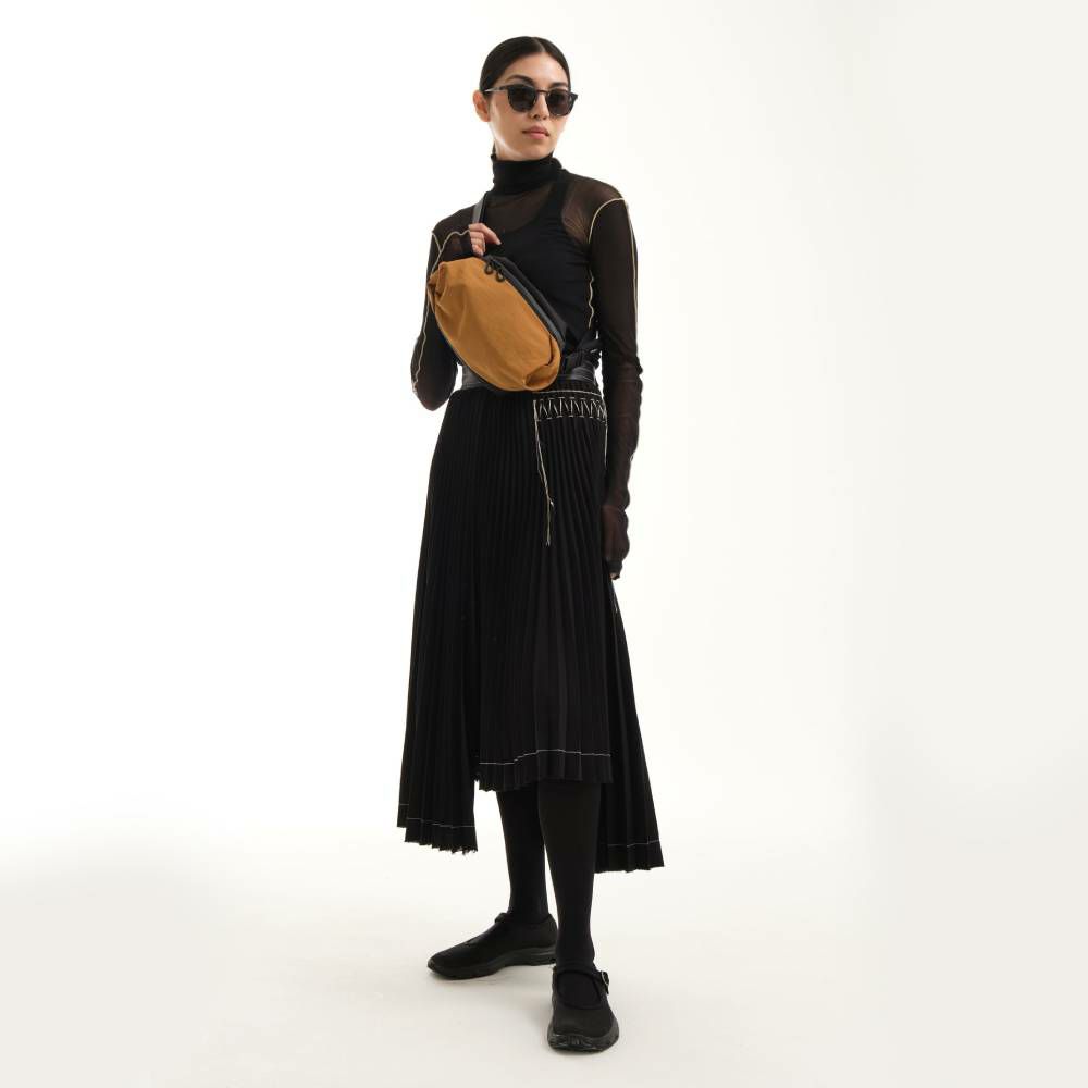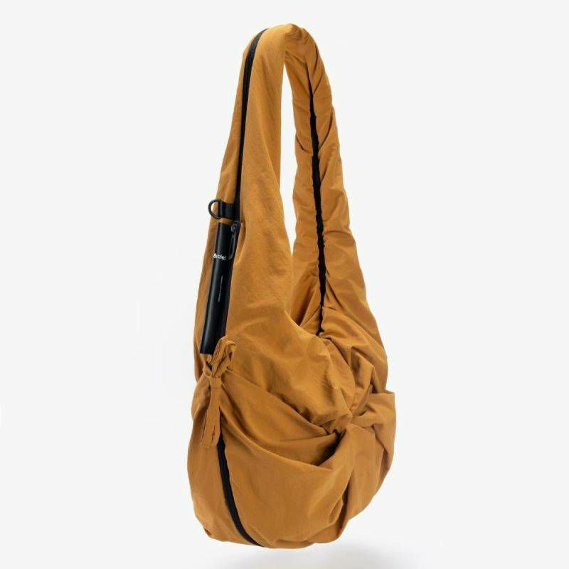 持ち主の気分やシーンに合わせて自在に形を変えられる、革新的なデザインが魅力のバッグ。シルエットの変化を楽しみながら、その日のスタイルや用途にフィットする形へと変更できます。