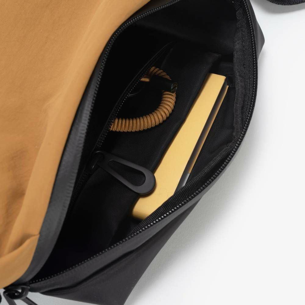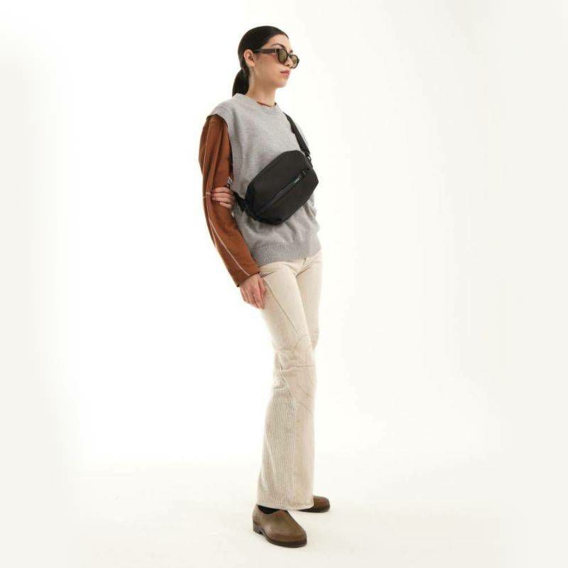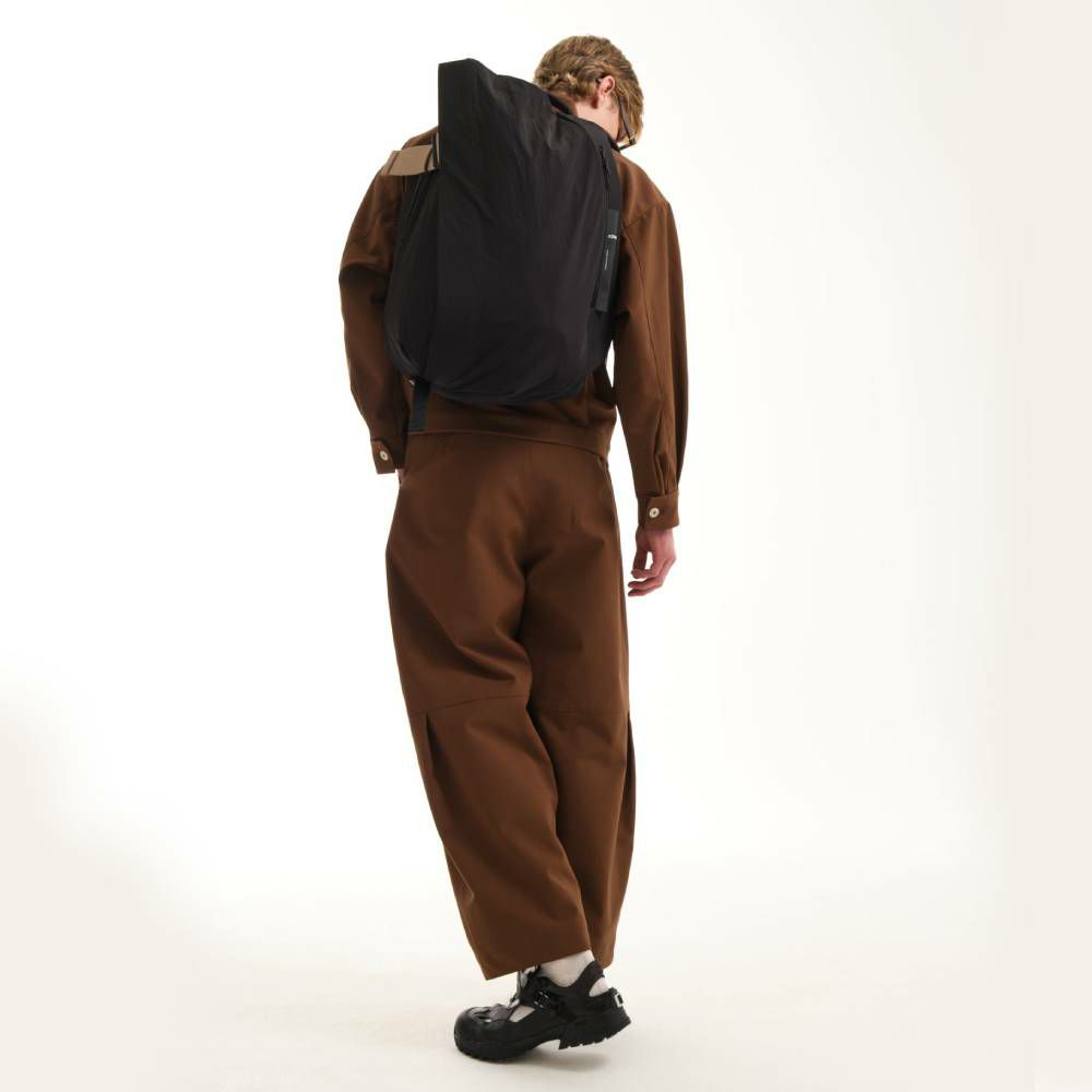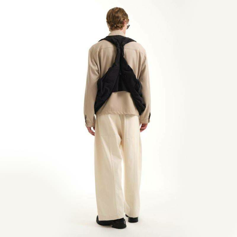 折り紙から着想を得た構造により、バッグとジレの両形態で繊細なレイヤーが生まれ、独特のデザインを演出。外装には隠しポケットやDリングクリップを備え、小物の取り付けも可能です。