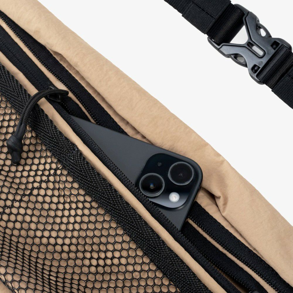 バッグが変形してサンド・カラーのメッシュ・オプションが現れると、生地に面白いひだができ、アクセントになります。
