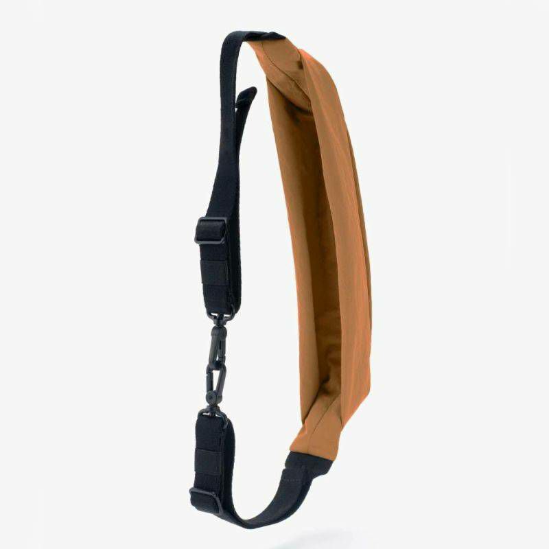 この象徴的なショルダーストラップは、ミニマルなクロスボディバッグとして、またはウエストに巻いて使用することができます。マットブラックのカラビナクリップを使えば、追加アクセサリーとして他のcôte&ciel製品に取り付けることができ、キャリーストラップやバッグの追加コンパートメントとして機能します。