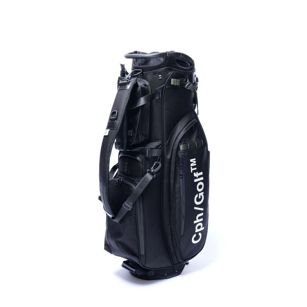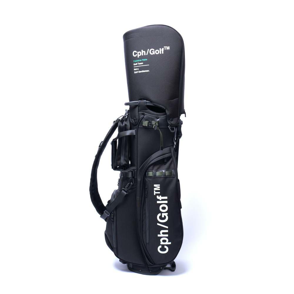 Cph/Golf™️のロゴとブランドカラーのオリーブカラーをキャディバッグのテープ部分にPOINTになるように配置。また、プリントしているロゴもそれに合わせてグリーンカラーのプリントも入れています。