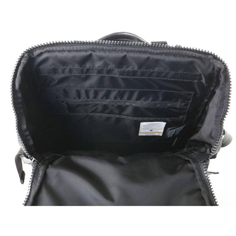 裏地が起毛素材になっているPC用ポケットがあり、15インチサイズのデバイスが収納出来ます。リュックを背負いながらPCを取り出すことが出来るように側面にジッパーがついています。