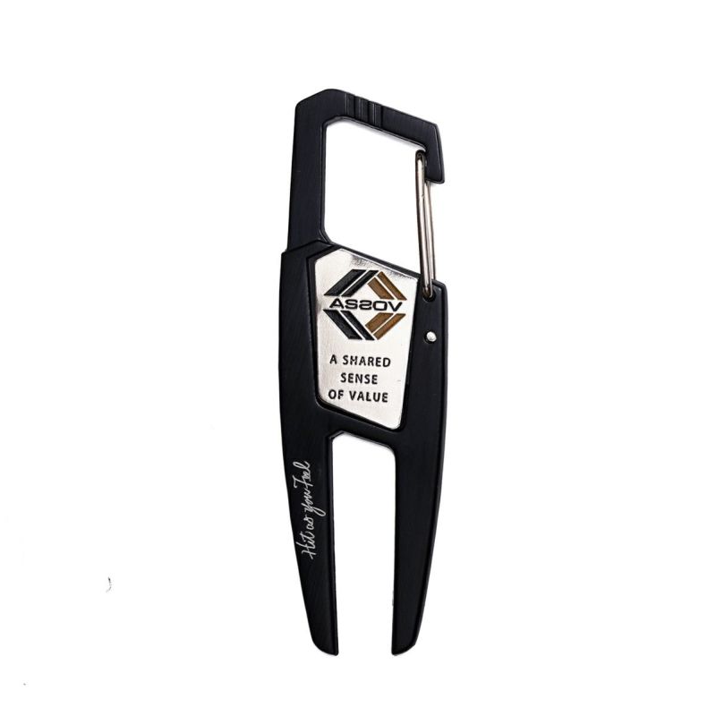 AS2OVオリジナルのマーカー付フォークカラビナです。 カラビナで腰回りにつけ、グリーンのへこみをなおす際にさっと取り出せます。 強力なマグネットによるマーカー付きです。