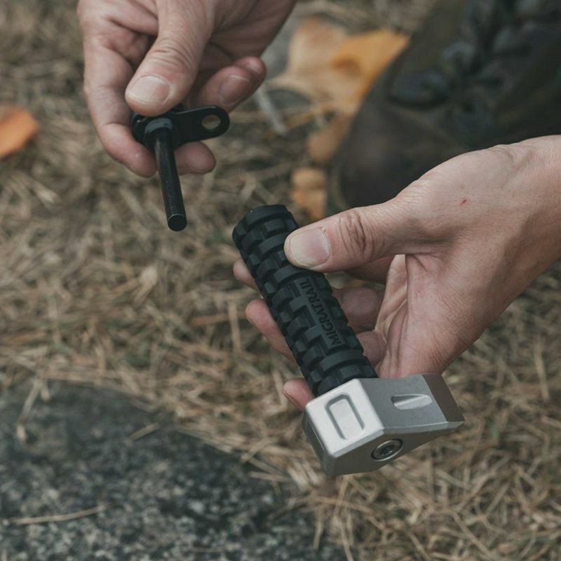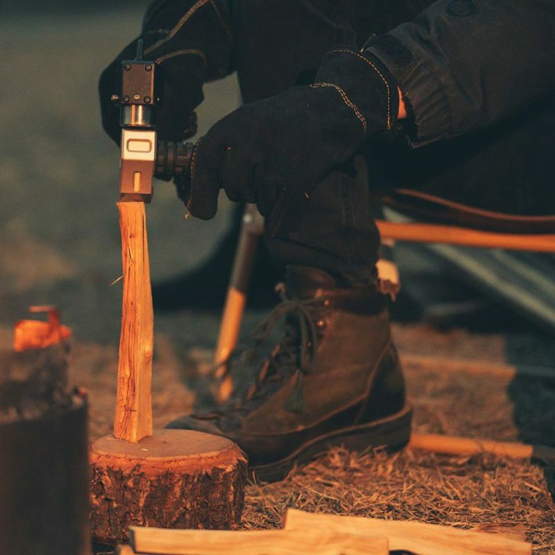 打ち付け部分から持ち手を遠ざけた横型薪割り専用クサビ。 軽量かつコンパクトで携帯性に優れる。グリップ内にファイヤースターターを装備。 セット内容 本体:1個 シリコンカバー:1個 ファイヤースターター:1本 ストライカー:1枚