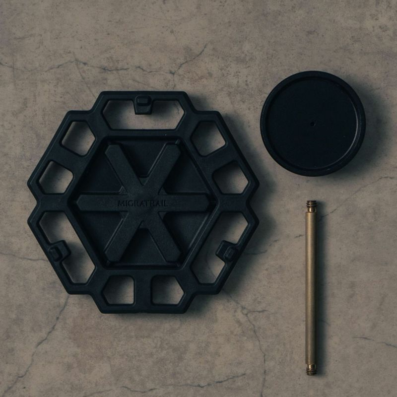 リビングにもキャンプシーンにも、馴染む万能プレート ジオメトリックプレートの機能を拡張して、アウトドアから自宅のリビングを飾る特別仕様。憩いの場をキャンプから自宅のリビングへ。 セット内容 プレート本体 :1枚 真鍮アダプター :1本 アルミニウム製プレート :1枚