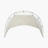 さらに広々使える仕組みが。それは、中央をアーチ状のポールにすることで、居住スペースにポールがこない仕様になっていること。ワンポールテントなどでよくある、中央にポールがきていて移動スペースが限られる……なんてこともありません。