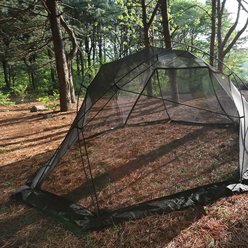 全ての壁面が解放できるので、夏季から冬季までオールシーズンで使用できます。サイドウォールがほぼ直立しているので通常の湾曲した作りのシェルターよりも圧迫感がない上、実際に広く使えます。