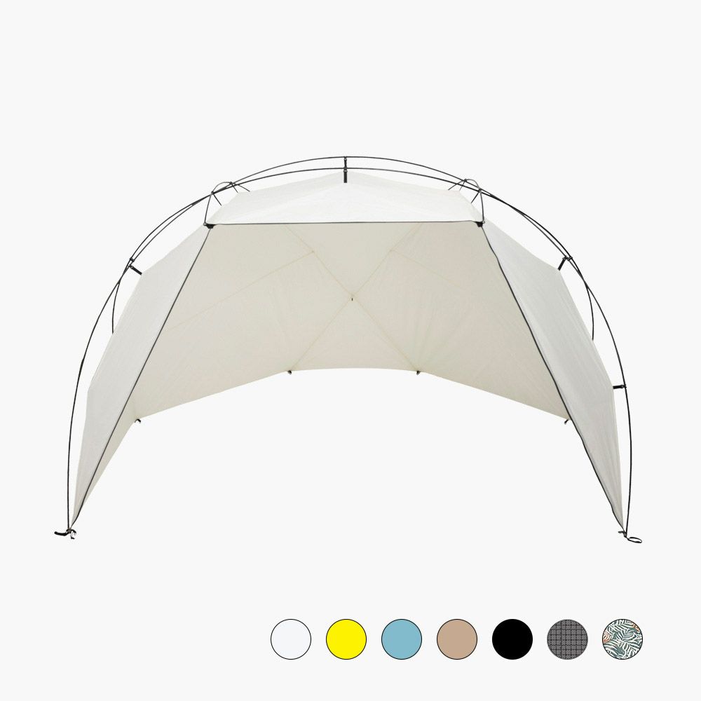 2つのポール(2本連結式)で構成され、簡単&素早く組み立てが可能。自立型シェルターなので、風の弱いところではペグダウンがいらなく、周りの状況によって柔軟に対応できます。